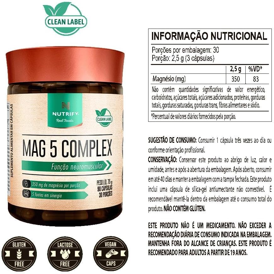 Mag 5 Complex Nutrify – Magnésio Quelado Premium | 5 Formas de Alta Absorção | Sono, Energia & Ossos | 60 Cápsulas
