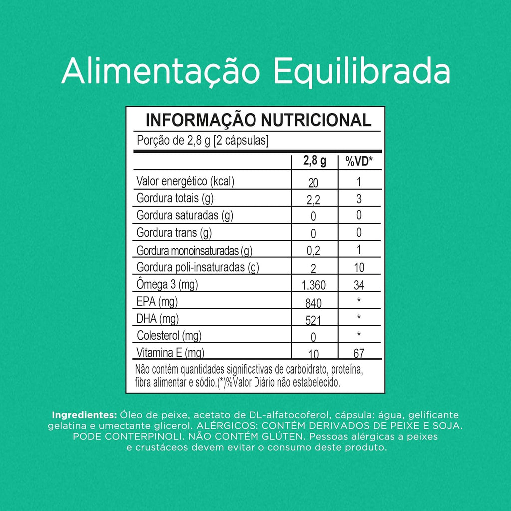 ✔ Selo IFOS – Certificação internacional que garante pureza, frescor e potência . ✔ Forma Triglicerídeos (TG) – Absorção 30% melhor que ômega 3 em forma de éster etílico. ✔ Dosagem Potente – 1360mg por dose (2 cápsulas) , com alta concentração de EPA e DHA. ✔ Clean Label – Sem aditivos artificiais, transgênicos ou metais pesados. ✔ Embalagem Econômica – 120 cápsulas (tratamento para 2 meses).